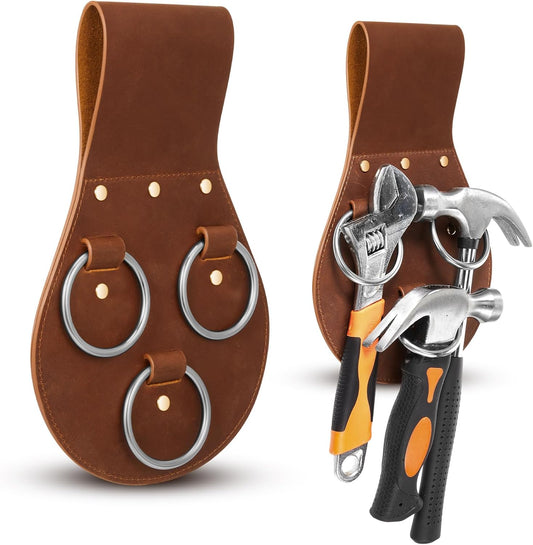 1 Pcs 3 Ring Spud Wrench Holder Sleever Bar Holder Black Leather Ironworker Tool Belt for Ironworker Tools Organization Accessories