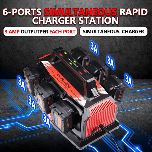6-Ports Super Simultaneous Charger for Milwaukee Battery,6 Port Each 3A Rapid Charger Station Compatible with M18 14.4V- 18V Li-Ion Battery