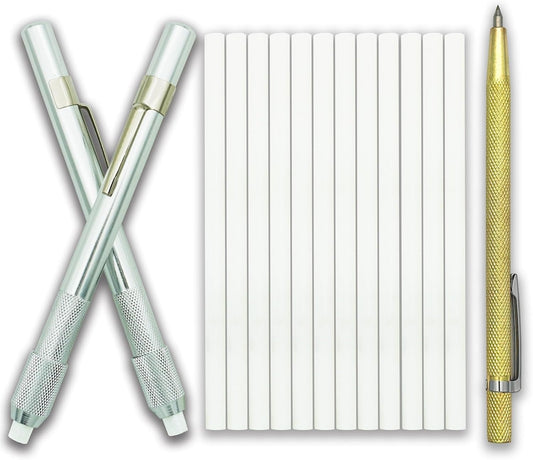 Soapstone Holder Set, Flat and Round Soapstone Holder, Extra 10pcs Soapstone Refills, for Welders, Mark White Clear and Removable Markings, Best for Welding