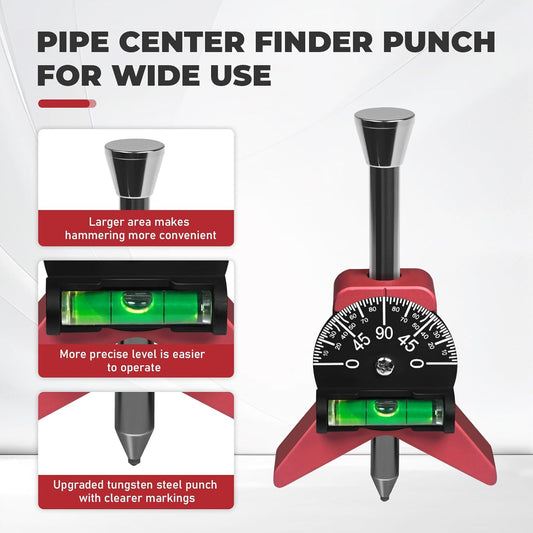 Upgraded Pipe Center Finder Tungsten Punch,Portable Pipefitter Tools with Ultra-High Hardness Punch,2.75" Y-Shape W/Adjustable Dial Bubble Protractor Measure Pipe Diameter From 1.5" To 6" Diameter