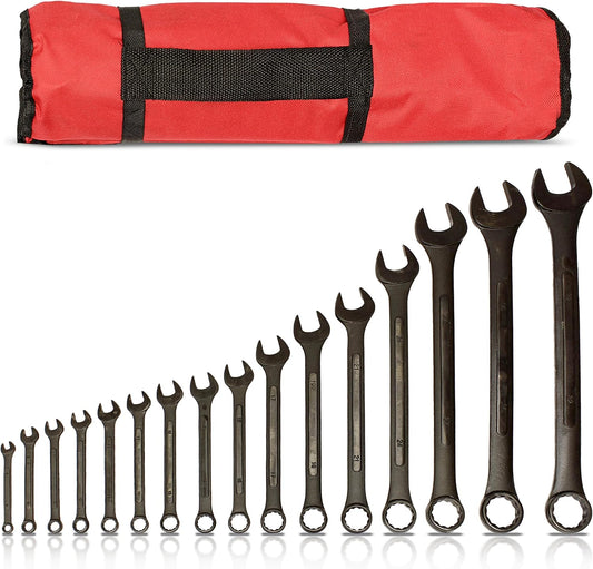 ABN Standard Wrenches Set - 16 Piece SAE Combination Wrench Set 1/4in to 1-1/4in SAE Wrench Set with Roll Up Pouch