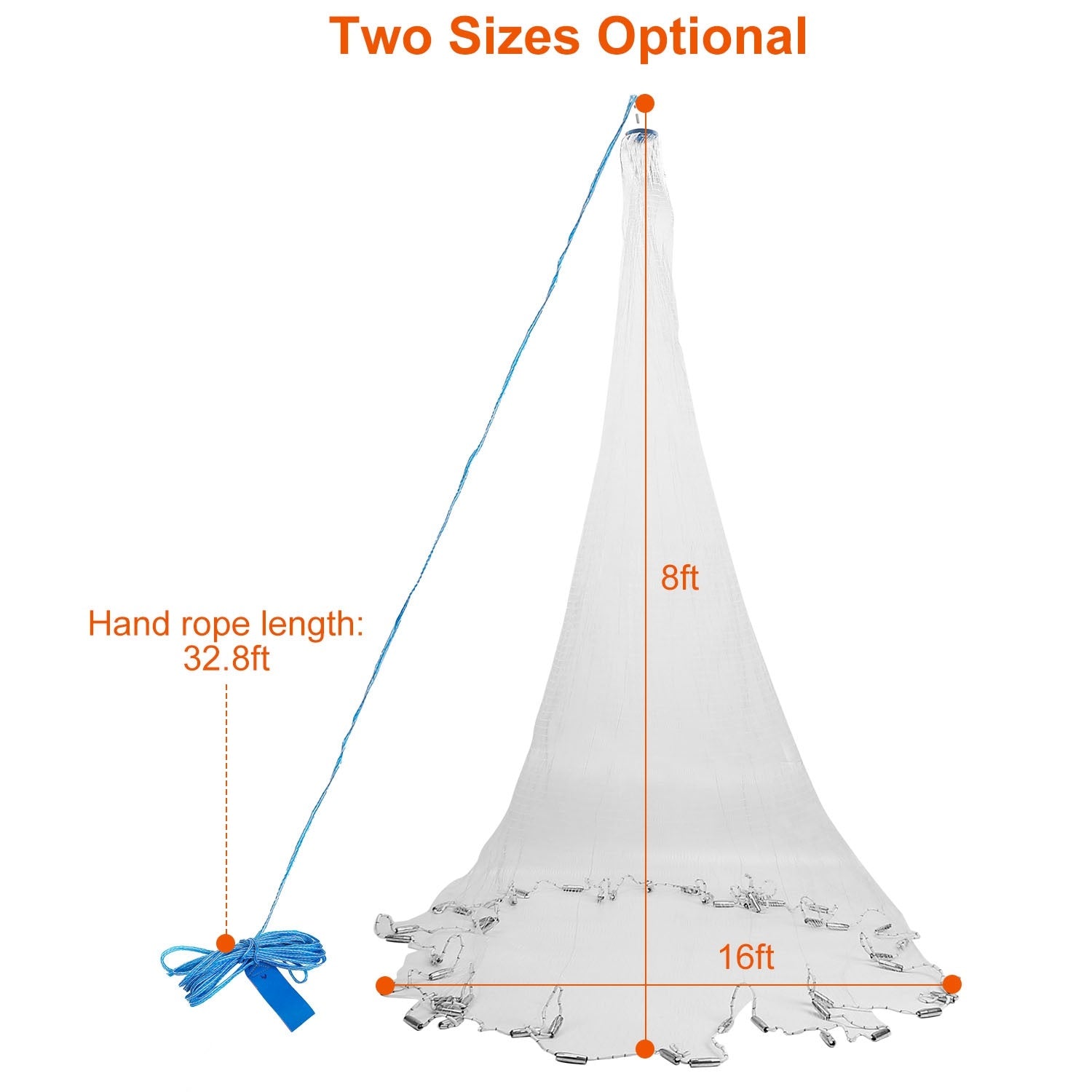 1Pc 2 Size Options 6FT 8FT Radius Fishing Cast Net Bait Trap Easy Throw Heavy Duty Hand Cast Net With Chain Sinker Bottom Spread